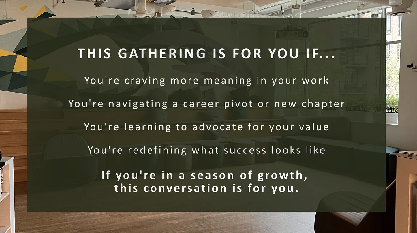 Not just the next title. Not just the salary bump. But the real stuff — the courage to pivot when something isn’t working, the confidence to advocate for what you’re worth, and the clarity to define success on your terms.